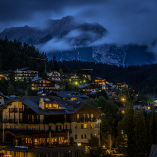 As the mist cleared, so we caught glimpses of distant mountains and reflections in the water became sharper and clearer. Several large carp swam by to make their presence known too. After time at the lake we headed back to the apartment, stopping off en route to visit the town of Seefeld. There, we climbed up to Seefeld's answer to Stonehenge and then waited for the sun to go down and the lights of the town to appear. We hoped to return to this spot for some star captures before we left.