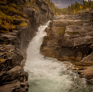 Next day setting out before the morning mist had fully lifted, our early exploration of the breathtaking landscape between Åndalsnes and Bjorli rapidly gained a defining characteristic. We very quickly started to refer to the 50km stretch as "Waterfall Valley," and for good reason. Within this concentrated expanse, waterfalls of varying heights, lengths, and volumes cascaded down the rugged terrain, each one a unique spectacle of nature's power and grace. The sheer abundance of such mesmerizing beauty made it incredibly difficult to know when to stop and admire, however eventually we reached the iconic Kylling bridge, where the morning light perfectly illuminated the autumnal colours, showcasing them in all their glorious, vibrant splendour.